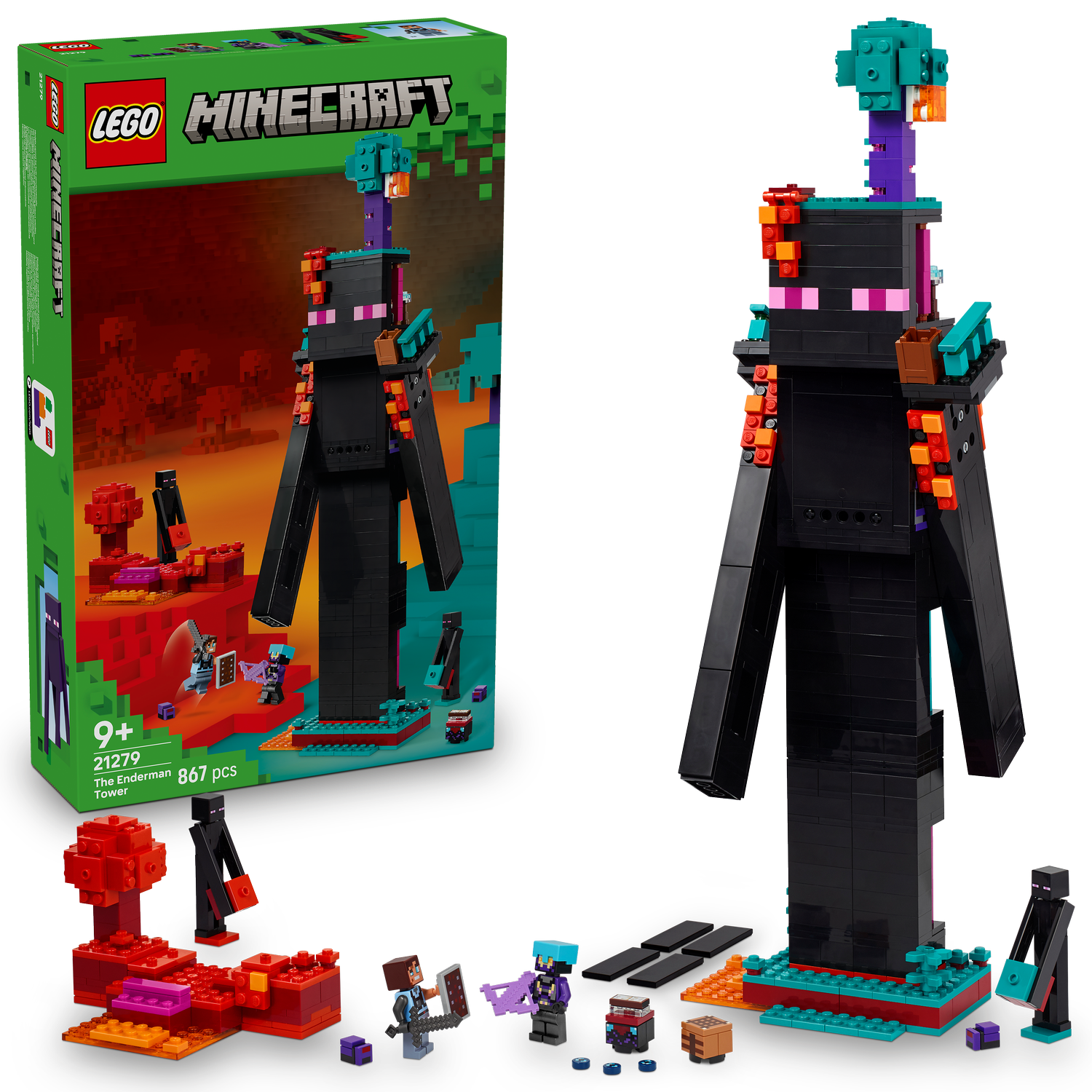 - 867-piece set – The Enderman tower stands over 17.5 in. (45 cm) tall
