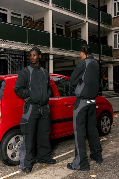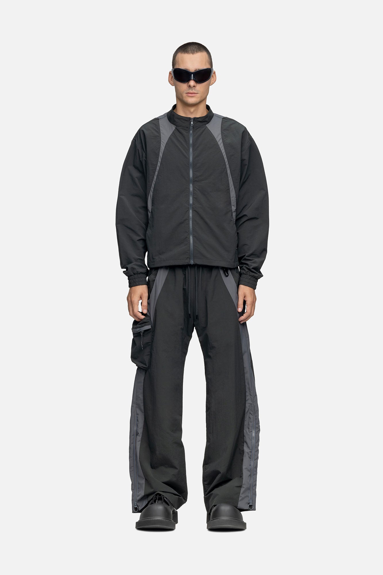 Crafted from cotton mixed nylon taffeta, the Studio Jacket features decorative lines on both side, hidden pockets at the front, and finished off with drawstrings at the hem.