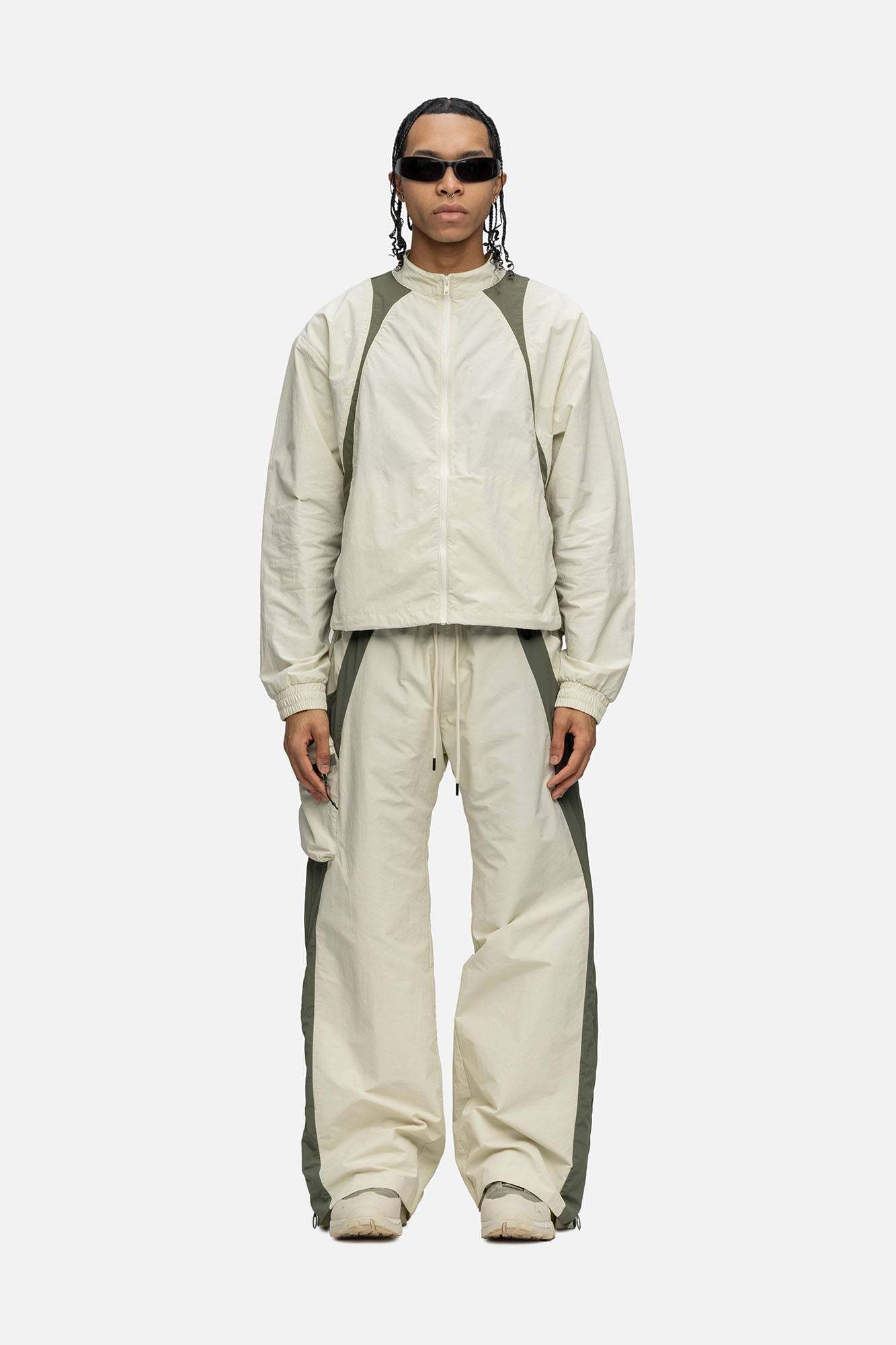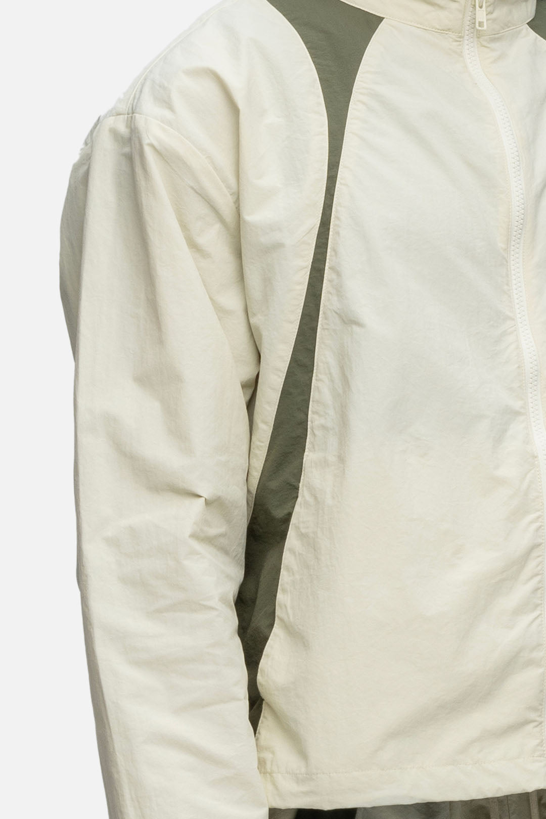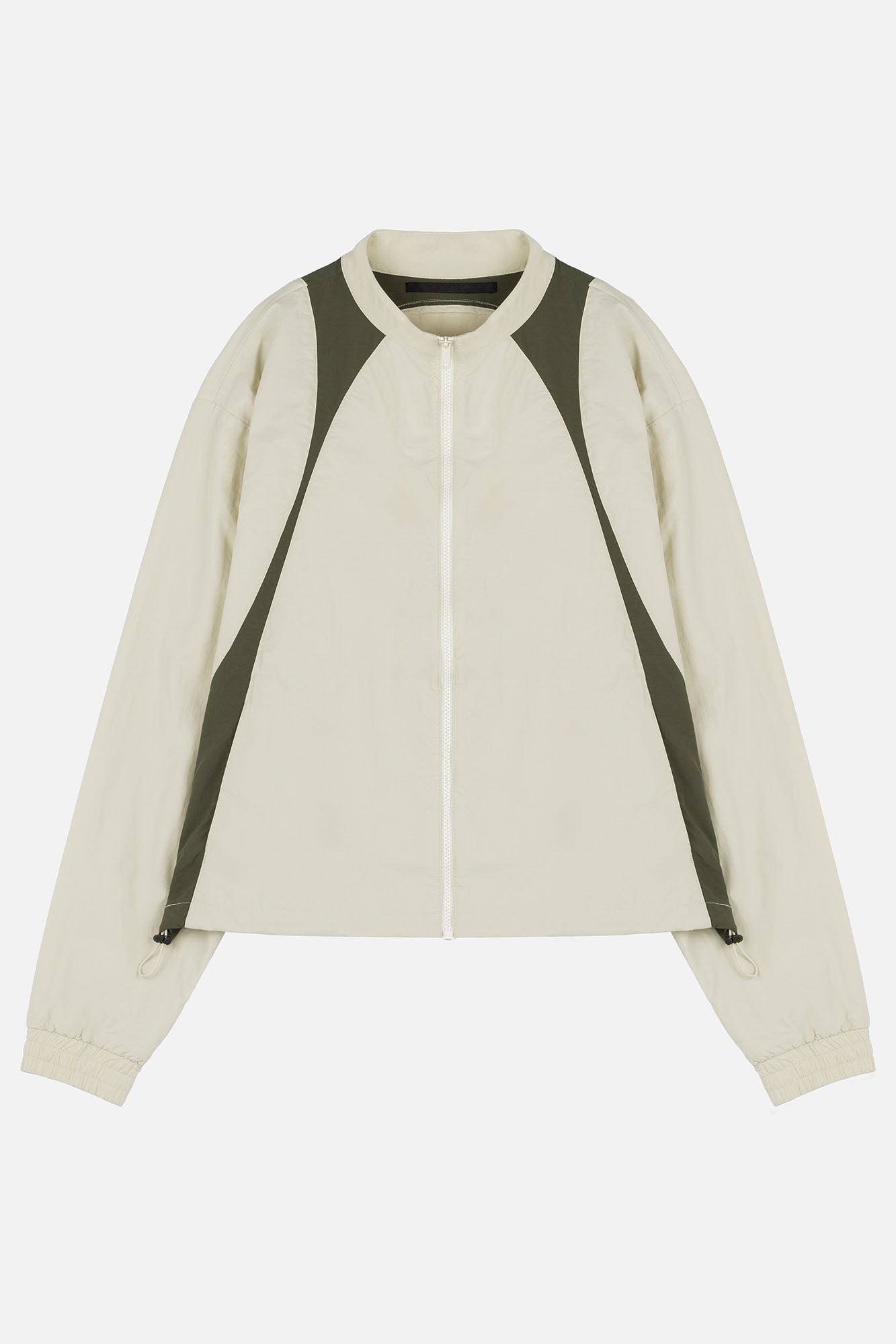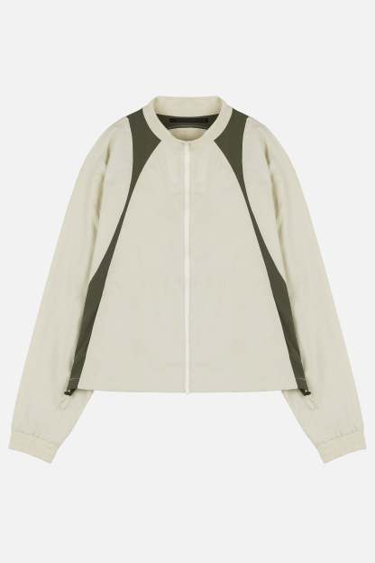 Crafted from cotton mixed nylon taffeta, the Studio Jacket features decorative lines on both side, hidden pockets at the front, and finished off with drawstrings at the hem.