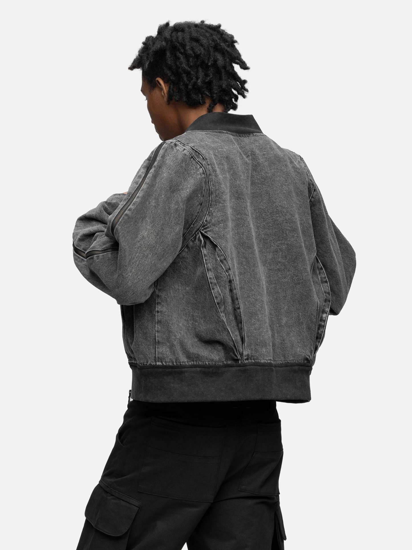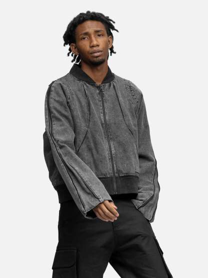 Crafted from cotton-made denim, the Zipper Denim Jacket features inverted pleat cutting lines, layered curvy cutting lines around the shoulder, and hidden pockets on the sides. Finished off with a ribbed collar and ribbed hem.