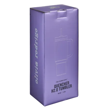 as the OLIVIA RODRIGO collab unfolds, purple makes a rare transit. orbiting through the quencher h2.0 flowstate™ tumbler, a clear SOUR grape lid and reusable straw debut for the first time. drenched in her favorite color, the powder coat finish acts as a canvas. studded in vampire-red and silver stars, celestial art embodies the soft–grunge essence of GUTS.