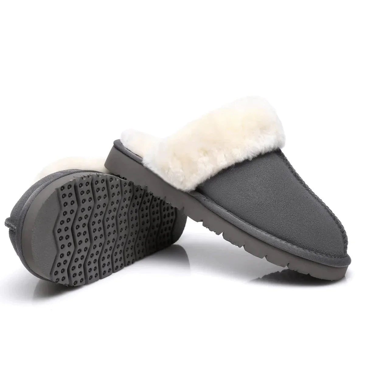 Inside the Lizzy Scuff, a natural wool interior awaits, creating an environment of light and breathable warmth. Wool is known for its excellent insulating properties, effectively regulating temperature while allowing air circulation, preventing overheating or sweating. This natural fibre is also moisture-wicking, helping to keep the feet dry and comfortable throughout the day.